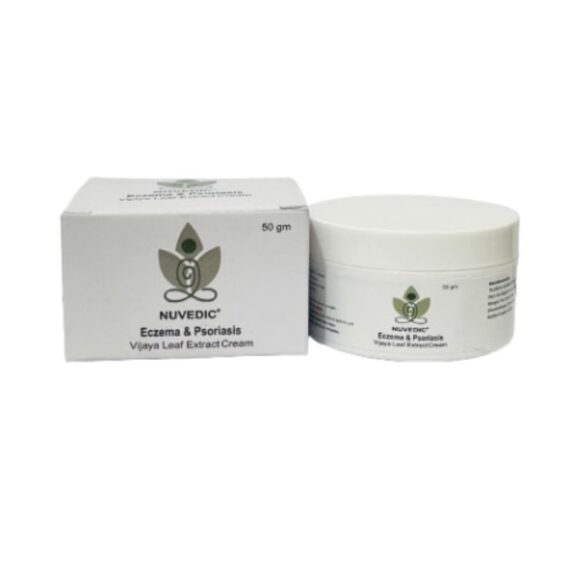 Soothe irritated skin with Nuvedic Eczema & Psoriasis Vijaya Leaf Extract Cream. Infused with Hemp Seed Oil, Aloe Vera, and Tea Tree Oil.